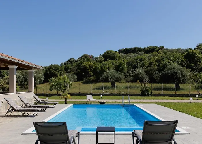 هناك الغلاية الكهربائية وأدوات المطبخ والآنية الزجاجية متاحة في المطبخ المجهز. أقرب مطار هو كورفو الدولي الذي يقع على بعد 15 كم من مكان الإقامة في Kouramaditika. يمكنك الاستمتاع بالمسبح الخاص أو استئجار السيارات واستكشاف جمال Kouramaditika. تشتمل المرافق الترفيهية على الفناء وطاولة بلياردو، بالإضافة إلى البينج بونج.